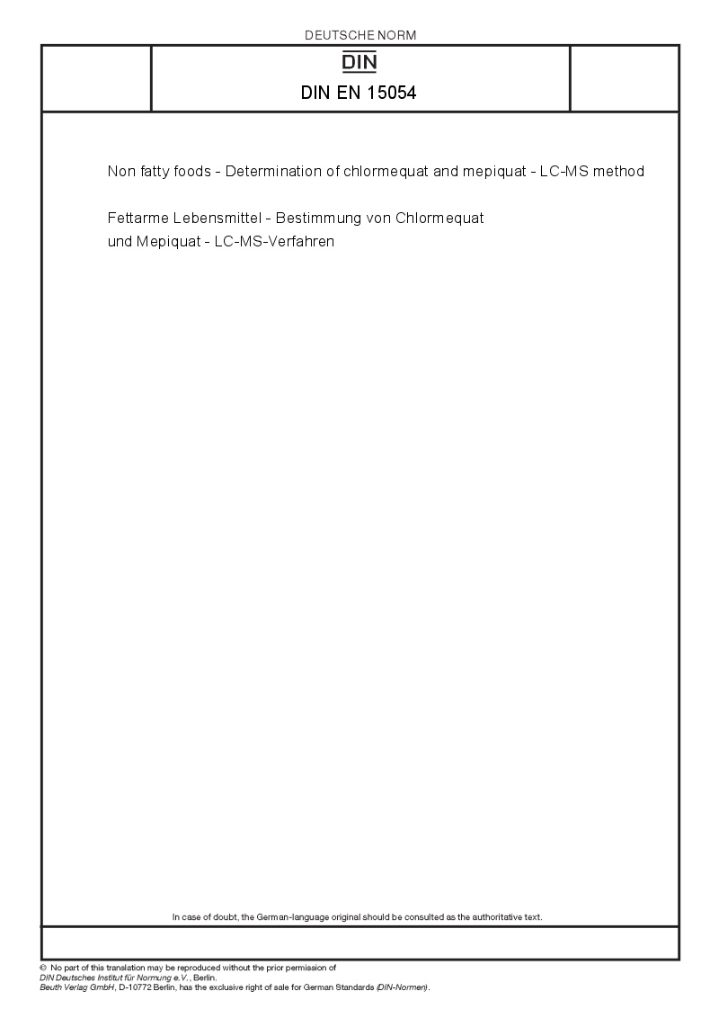 EESTI STANDARDIKESKUS EESTI STANDARD EVS-EN 15055:2006 This document is a preview generated by EVS Non fatty foods - Determination of chlormequat and mepiquat - LC-MS/MS ... Return Doc